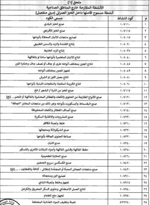 في المقابل، شدد القرار على حظر إقامة أو تشغيل الأنشطة الواردة بالملحق رقم (2) داخل المناطق الصناعية، في خطوة تهدف إلى إعادة توزيع الأنشطة وفق طبيعتها ومدى تأثيرها.