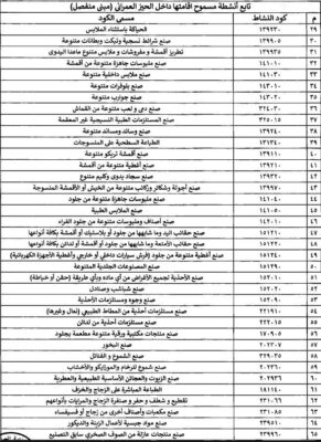 - إضافة أنشطة جديدة من الأنشطة المسموح بها
